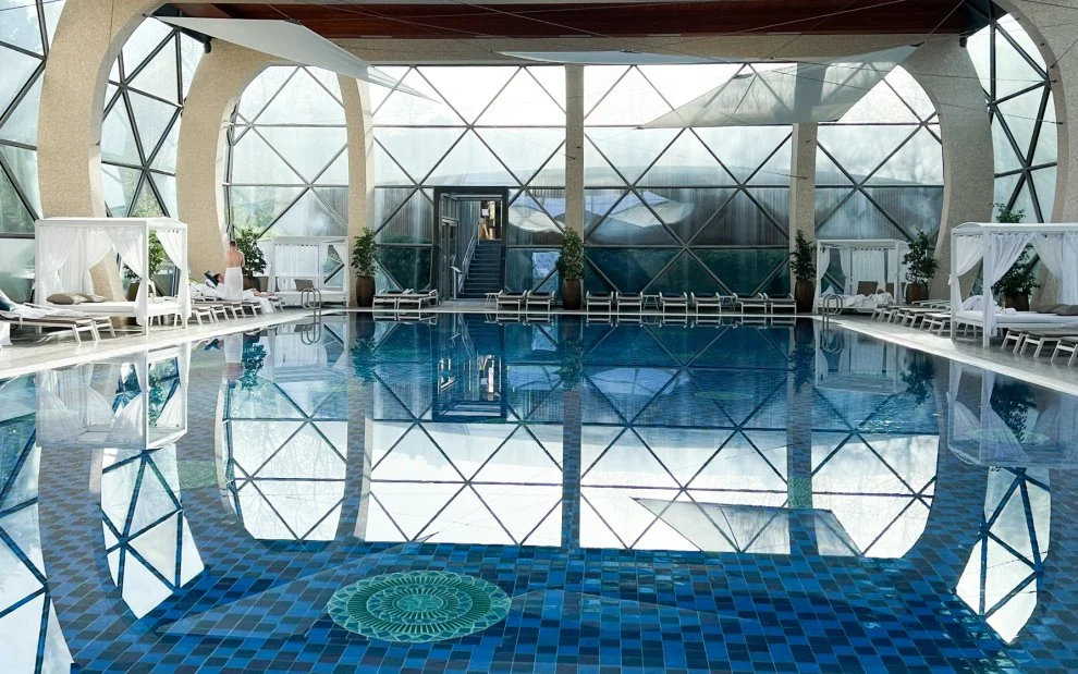 Součástí wellness je také 22 různých bazénů – od plaveckého přes zážitkový až po venkovní termální bazén, který jsme si zamilovali nejvíc. Koupat se v teplé minerální vodě na čerstvém vzduchu, zatímco kolem vás šumí stromy, je prostě perfektní způsob, jak vypnout a načerpat energii. Celý prostor je krásně udržovaný, čistý a působí harmonicky. Ať už jsme si chtěli aktivně zaplavat, nebo jen v tichosti relaxovat na lehátku, vždy jsme našli své místo.