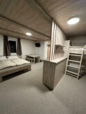 Apartmán 5 najdete ve druhém patře a měří 26 m². V jedné místnosti se zde nachází kuchyňka, manželská postel a 2 samostatná jednolůžka (jedno je vyvýšené).