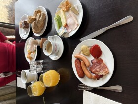 Snídaně byla rovněž na vysoké úrovni. Oceňujeme i to, že po nočním sněžení byla cesta od apartmánu k hlavní budově pečlivě posolená a upravená – bezpečnost hostů je zde zjevně prioritou.