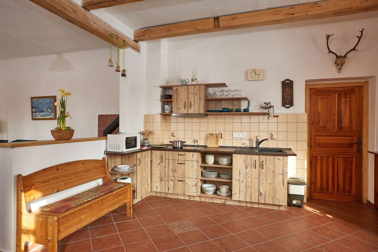 | Kuchyň s jídelním stolem | lednice s mrazákem, varná deska, mikrovlnka, rychlovarná konvice, veškeré nádobí; univerzální kapslový kávovar (kompatibilní s kapslemi Nespresso Original, Dolce Gusto, Lavazza Blue; připravíte si v něm také nápoje z ESE podů či klasické mleté kávy). Kapsle nebo kávu si, prosíme, přivezte vlastní. |