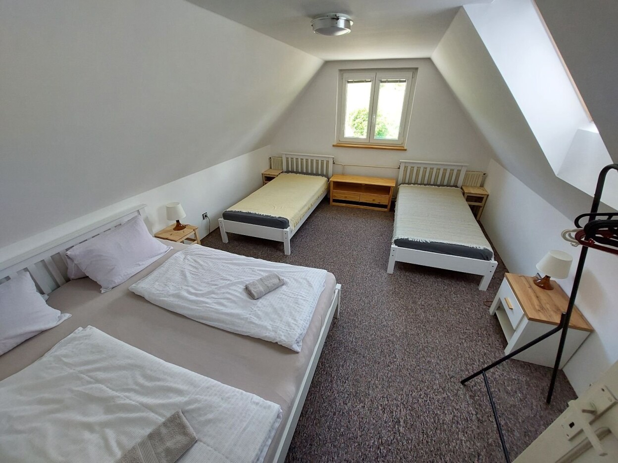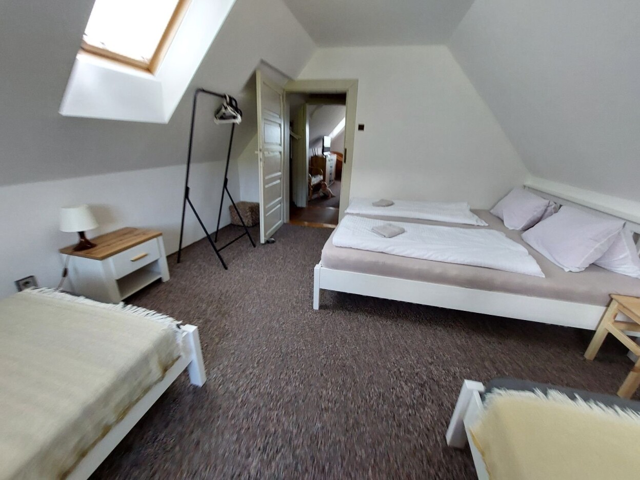 3.Pokoj 3+0 (třílůžkový pokoj), koupelna s vanou, lednice, koutek na přípravu kávy/čaje, oddělené WC